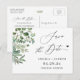 Bröllop Spara datum Elegant Grönska Eukalyptusblad Postkort.