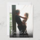 Det här moderna skriptfotot sparar datumkortet med det speciella fotoöverlagret med ett elegant-skript som sparar datumet ovanför namn, datum och plats i vit text. På baksidan finns ytterligare information om datum, inklusive webbplatsen bröllop. Du kan anpassa bakgrunden till färg som är din favorit. Designad av Thisisnotme©