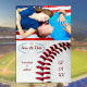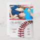 Spara datumet med ett basebolltema i åtanke! Upper mall för foto- och textmallar finns på den här vackra nära basebollbollen. Spara det datum som omges av guld krona överst, blå grönt lagrar på varje sida och baseboll under. Basebollstygn rand på baksidan.