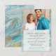 Spara datumturkos- och Guld Marble Bröllop-kort Inbjudningar