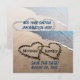 "Spara datum!"-texten i blått, eller ändra enkelt ordalydelsen, läggs till på detta vackra originalfoto av professionellen med två hjärtan som är skrivna i sanden längs det blå havet vatten vid stranden för att beteckna kärlek och romantik. Sätt enkelt in namn från bruden och brudgummen i varje hjärta som visas, och datum nedanför dem. Exempelexemplet namn är skrivet i perfekten som matchar typsnittet stil och färg, som också lätt kan ändras. Skriv anpassningsbarnas text och information på baksidan av inbjudan eller lämna bara tomt om du vill. Underbart koncept för kommande förlovningar på sommaren, bröllop, årsdagar och spara inbjudan och tillkännagivanden för paret lycklig.