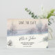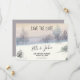 Spara Det Spara vinterbröllopskortet skapat med ett Winter Wonderland-tema, snö som faller i en skog. Texten innehåller: Spara datum, Bride & Groom's Namn, Bröllop-datum och formell inbjudan att följa. Baksidan är en solid färgad-bakgrund. Om du vill anpassa det här Spara datummeddelandet i Bröllop infogar du bara dina uppgifter i vår enkla mall och ersätter exempeltexten. Det är snabbt och enkelt. Finns i tryck eller nedladdning.