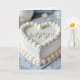 En hjärtformad kaka med ord "ENGAGED" skriven ovanpå dekoreras elegant med vita frostsnissor. All text inuti kan ändras.