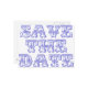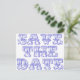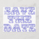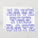 Teckensnittet för fantastisk vintage i blått med meddelandet "Spara datum" som fyller hela utrymmet på kortets framsida. Snyggt och ursprunglig utformning skulle vara ett traditionellt tema, men också ett modernt tema, ett tema med stil. Andra färg finns i min butik under "Slogan"-sektionen.