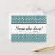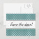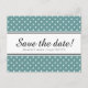 Spara bara datumkort med teal och vit polka dots mönster. Modern polkadot-utskrift i chic för elegant bröllop party. Trendig och roligt contemporary stil. Anpassningsbarnas bakgrundstext färg och personlig på baksidan. Ändra kvantiteten för att få den billigaste prisa per kort.