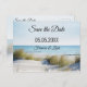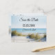 Ett underbart Spara vykortet för datum med en bild av sanddyner som förbiser en strand och ett hav. Perfekt för ett planerat strandbröllop.