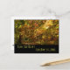 Löven var perfekt i oktober vid det sjunde Vår-manifestet. Här är en bild som visar en kanopi med ljusa gult och orange löv. Det här vykortet är perfekt för att tillkännage ditt fallbröllop eller evenemang.