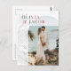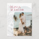 Det här Spara vykortet för datum från Leilani-samlingen har skarp, fetstilt färg och modern typografi som ramlar in förlovningens foto. Se till att du får ett bestående intryck på dina gäster! Anpassa den med dina detaljer enkelt och snabbt. Tryck helt enkelt på knappen "anpassa" för att ytterligare ordna om och formatera stil och placera texten.