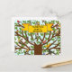 Lönsam familjeåterförening spara-till-datum eller inbjudan med tecknad familj träd fylld med färgstarka fåglar.