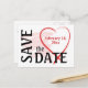 Om du behöver ett snabbt sätt att meddela folk om din speciella händelse är vykortet "spara datumet" bara sak för dig. Fetstilt "spara datumet" ord som sitter på vykortets kant i versaler brev får omedelbar uppmärksamhet, medan det borrade röda hjärtat lämnar inga tvivel om händelsen. Inuti hjärtat finns datumet för evenemanget, vilket ger fullt anpassning i teckensnitt och färg. Baksidan av vykortet ger också möjlighet till anpassning av fullt med tillägg av namn.