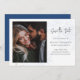 Den här designen har ett fotomallkort av typen bröllop spara-till-datum med en modern minimalistisk utformning. Modellskript för kalligrafi av snyggt och en enkel design för blå blommigt med information om QR-kodwebbplatsen.