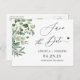 Bröllop spara datum Elegant Greenery Eucalyptus Löv Postcard. (1) Om du vill göra ytterligare anpassningar klickar du på länken "anpassa ytterligare" och användor verktyg som är utformat för att ändra mallen. (2) Kontakta mig om du behöver hjälp eller matchande artiklar.