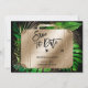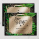 För din resa och äventyr bröllop på tropiska destinationer - Spara datumkortet med gyllene resväska och tropiska blad