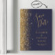 Det moderna magnetkortet i bröllop spara datum från, som är lämnat kant i eleganten, har ett guld faux glitter gräns. Anpassadet kombinerar handskrift, rityta och kursivt typsnitt i blek guld-färgad med mörk blått bakgrund.