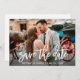 Trendiget Modern penselskript Spara datum-Förlovningen, par fotokort - vitt skript