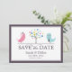 Det är ditt bröllop och du vill skicka "Spara datumet"-kort? Då är det här söta love birds-kortet perfekt för dig! Allt du behöver göra är att ändra texten på kortet. Du kan göra texterna större eller mindre genom att klicka på "Anpassa".