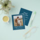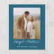 Budgetera Anpassa den här Mörken Teal and White One Photo Simple och Elegant Dubbla Sided Spara datuminbjudan med ditt meddelande och information. Den här inbjudan till chic innehåller handskriven manustypografi för snyggt och elegant för att det speciella Bröllop ska kunna vara firande.