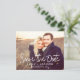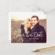 Budgeterat, modernt och Elegant, minimalistiskt fyrkantsfoto Spara datumvykortet Bröllop. Datuminbjudan innehåller en modern handskriven skripttypografi med en chic och enkel design som du kan lägga till ditt anpassade förlovning-fotografi bild till.