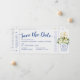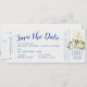 Nautiskt bröllop-boardingkort flygplan biljett spara datum meddelande med ett sött ankare guld inkapslat i en vit blommigt av arrangemang och elegant. Designad för ett destinationsbadbröllop eller kryssning frakt bröllop.