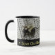 Det här är ett av mina favoritfotografier och det passar bra med det här svarta och vita kaffet mugg. Ett nära bin på baksidan av korgstolen. På grund, ett svart band med text som läser Spara Vår Bees. Mugg kan anpassas genom att man byter ut färg på handtaget och inuti. Bandet färg på grund kan också ändras och du kan lägga till din egen text eller anpassa mugg med namn. Design visas längst fram och längst bak i mugg.