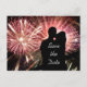 En silhuett av ett kyssande par framför en stor fyrverkerivisning. Anpassa den här underbara produkten med egen skannerbar QR pub-kodtext, monogram, logotyp, företagsslogan eller personligt meddelande! (klicka på orangen "Anpassa den!" ovan)