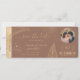 Boardingkortet Biljett Guld Flygplan vid destinationsbäckenet Spara datumet med hjärta och flygplan med tropiska löv. Lägg till fotot. Mocha mousse-bakgrund färg