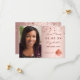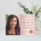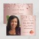 Ett foto Spara datumkortet för en studentfest. På framsidan: Lägg till ett eget lodrät storlekt foto av student. En metallisk tittar bakgrund i ro guld, dekorerad med stjärnor. Anpassa och lägg till namn och datum. Namn och texten: Spara datumet är skrivna med ett modernt handskript i stil. Tillbaka: Information om party.