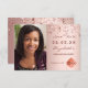 Ett foto Spara datumkortet för en studentfest. På framsidan: Lägg till ett eget lodrät storlekt foto av student. En metallisk tittar bakgrund i ro guld, dekorerad med stjärnor. Anpassa och lägg till namn och datum. Namn och texten: Spara datumet är skrivna med ett modernt handskript i stil. Tillbaka: Information om party.
