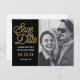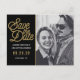 Icke-traditionell Spara vykortet Date Bröllop har ett modernt skript i guld mot en svart bakgrund. Ditt svarta och vita foto är en komplimang till detta fet meddelande.