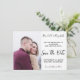 Den här snyggten "Spara datummeddelandet" innehåller designen med ett platshållarfoto för lodrät som du ersätter med ett lodrät format. Fyll i fält med dina detaljer på fram- och baksidan, ta bort oönskad information och/eller klicka på anpassningen för att välja ett typsnitt stil, storlekt och färg som du föredrar på framsidan och baksidan.