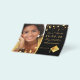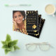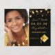 Observera att det här Spara datumet är pappert och mycket tunt. Kuvert ingår inte. För tjockare kort (samma design), besök vår butik. Ett foto Spara datumet för en studentfest 2023. På framsidan: Lägg till ett eget lodrät storlekt foto av student. En chic svart bakgrund färg, dekorerad med faux guld-stjärnor. Anpassa och lägg till namn och datum. Golden brev. Namn och texten: Spara datumet är skrivna med ett modernt handskript i stil.