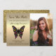 Lyx, elegant, unik, färgstark, guld-fjäril i kombination med anpassningsbar foto av flickan och mousserande, baksidan av glitter guld. Whimsical, snyggt, förtjusande Quinceanera Spara datuminbjudan.