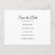 Med det här fotot med det moderna eleganten sparar du datumkortet med ett överlagrat utfallsfoto med ett skript som sparar datumet ovanför namn, datum och plats i vit text. På baksidan finns ytterligare information om datum, inklusive webbplatsen bröllop. Designad av Thisisnotme©