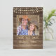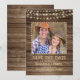 Rustic land wood and string ljus foto design for your bröllop spara datum Meddelanden. PHOTO TIP: För snabbaste/bästa resultat väljer du ett foto med subjekt i mitten och/eller före skörd till kvadratisk form före uppladdning. Kontakta designern via Zazzle-Chatta eller makeitaboutyoustore@gmail.com om du vill att designen ska ändras, på en annan produkt eller om du vill ha andra koordinerande element.