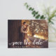 Handskrivna Bröllop spara datum-kort som har ett foto på framsidan och baksidan. Korten Save the Date Fall, Autumn, Winter, Vår eller Summer innehåller en modern handskriven kursiv skripttypografi med hjärtan som är elegant, enkel och modern till använda efter att du har minimalistisk enkel bröllopsdag firande.