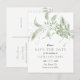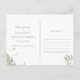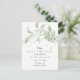 Det här vackra Spara datumvykortet skapar säkert en oförglömlig atmosfär för ditt speciella tillfälle. Med en krävande sage-grönt och vita blommor utstrålar vykortet en elegant och en känslig atmosfär som kommer att göra din händelse verkligt oförglömlig. Brevkortets charmerande utformning kommer säkert att lämna ett bestående intryck på dina gäster, medan blommorna i grönten ger en mjuk men kraftfull atmosfär som garanterar att ditt evenemang kommer att bli ihågkommet för komen i flera år.