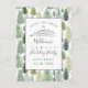 Familjen inbjudan och vänner till helgdag eller julen party med anpassningsbarna "Spara datum"-vykort med ett mönster av vattenfärgen grönt träd gräs. Anpassa grått-typografin i modern text och skript på en vit panel med motsvarande grått-kantlinje. Lägg till all relevant information, inklusive julfestens namn, datum och år på omslaget och returadressen, dagen, datum, år, tid, plats, adress och OSA samt plats för att skriva gästerna adress för leverans på baksidan. Designad av © Tim Coffey.