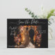 Mörk och elegant Spara datuminbjudan. Det här är en elegant Spara datuminbjudan. Enkel men bedövande med en brud och en groom i ett vackert bröllop-läge.