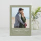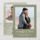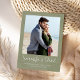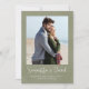 Den här fina designen har ett spara-till-datum-fotokort, perfekt till mål, bröllop, med en enkel elegant, klassbildmall stil, en unik grönt, handflatan löv-perfekt för utformning av badplatser
