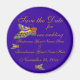 Fjäderflugan sparar bröllop-magnet. Monarch Butterfly art med guld-teckensnitt. Visas med en valfri bakgrund för lila. Anpassa och blanda eller matcha med samordnande bröllop- och möhippa-produkter med färgstarka fjärilar.