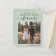 Modern grönt sparar vykortet för ditt e-postbrev eller lilla bröllopsmottagning med ditt foto och "Spara datum för vårt lyckligtvis allt efter Party" i en blandning av enkel typografi och ett trendig-skript med dekorationer. Lägg till ditt första datum och plats för namn och mottagning/party. På motsatt sida kan du ge mer information.