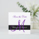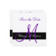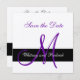Svarta rand med lila i början på ett metalliskt silver pappra lagrar. Spara enkelt datumkortet med monogram. Elke Clarke© Designad för monogramgalleriet. Mallen spara datum meddelande är helt och hållet anpassade med teckensnittet stil, färg, pappra storlekar och pappra lagrar. Matchande objekt i butiken. Kontakta luxuryweddinginvitations@gmail.com för hjälp.
