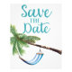 Spara datumets tropiska paradise - Med en vintage stripe-hammock hung på en stor bröllop/Förlovning i handflatan träd eller firande poster konst.