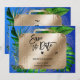 För din resa och äventyr bröllop på tropiska destinationer - Spara datumkortet med gyllene resväska och tropiska blad
