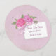 Vid Spara datum används en rosa-peonbukett med polka-punktsband och blanksteg med vattenfärgseffekt på mjuk rosa-bakgrund. All text kan ändras.