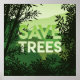 Spara Träd. Se genom löv i en skog. Instruktion för att skydda miljön och sprida medvetenhet. Motiverande poster att uppmuntra kärlek i våra skogar. Grönt. .