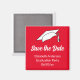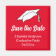 En vit gradens lock är ovanför "Spara datumet" i ett vitt skript. Tre linjer vit visning står vid grund. Du kan redigera texten för att visa student namn, ett anpassningsbar-meddelande och händelsemedatum.