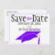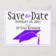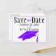 Skicka den här lilan, svart och vit "Spara datum" för klassåterförening på det här meddelandet om vykort. Anpassa texten i mallens fält för fram- och tillbaka eller klicka på anpassa för att välja det teckensnitt stil, storleka och färg som du vill använda.