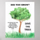 "Spara i träd"-klassrummet för miljö/bevarande poster. Text: "Visste du det? Ett genomsnitt av träd producerar tillräckligt med syre för att behålla fyra människor ska andas i ett år. Spara Träd." Perfekt till klassrummet.