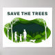 Spara Träden Grön Familjepark Ekologisk Affisch. Vacker miljöaffisch med en söt familj som går sin hund i parken. Anpassa denna anpassade design med din egen text.